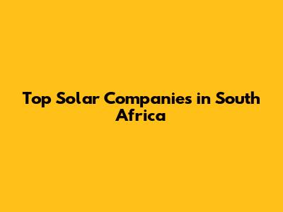 Top Solar Companies In South Africa