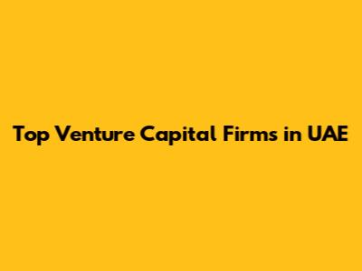 Top Venture Capital Firms In UAE