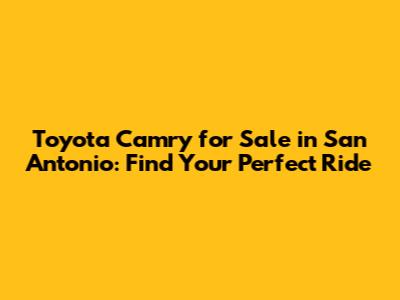 Hey guys! Are you on the hunt for a Toyota Camry for sale in San Antonio? You've come to the right place! This article is your ultimate guide to navigating the San Antonio car market and finding the perfect Camry to fit your needs and budget. We'll dive deep into everything you need to know, from understanding the different Camry models and trims available to tips for finding the best deals and securing financing. So buckle up and let's get started on your car-buying journey!