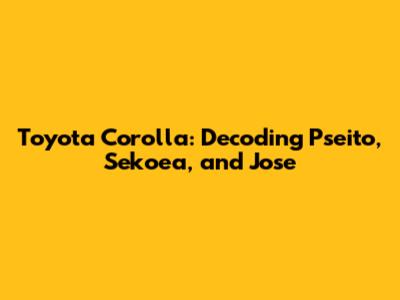 Toyota Corolla: Decoding Pseito, Sekoea, And Jose