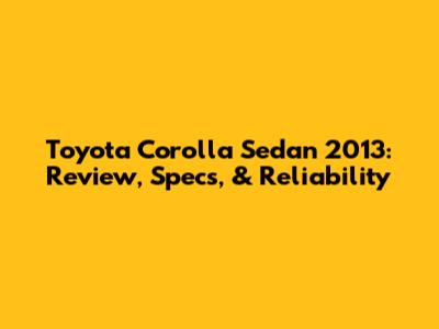 Toyota Corolla Sedan 2013: Review, Specs, & Reliability