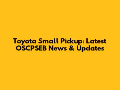 Toyota Small Pickup: Latest OSCPSEB News & Updates