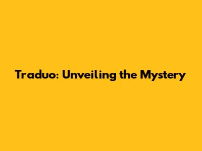 Hey guys! Ever stumbled upon the term "Traduo" and wondered, "What in the world is that?" Well, you're in the right place! We're diving deep into Traduo, breaking down what it is, what it does, and why it might just be the coolest thing you haven't heard of yet. Buckle up, because we're about to embark on a journey to unravel the Traduo enigma!
