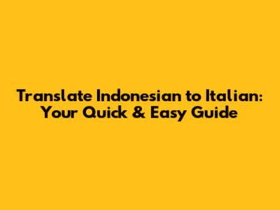 Translate Indonesian To Italian: Your Quick & Easy Guide