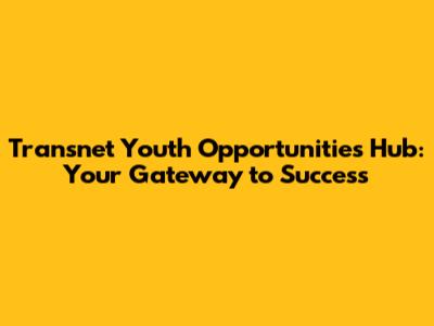 Transnet Youth Opportunities Hub: Your Gateway To Success