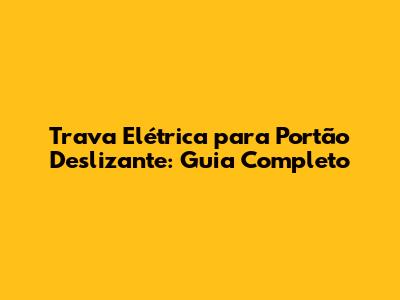 Trava Elétrica Para Portão Deslizante: Guia Completo