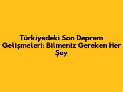 Türkiye'deki Son Deprem Gelişmeleri Ve Bilmeniz Gerekenler