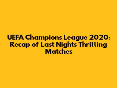 Hey guys! Let's dive into the UEFA Champions League 2020! We're talking about the action from last night. If you're a football fanatic like me, you know how exciting it can be. The matches were filled with stunning goals, nail-biting finishes, and unexpected twists. This recap will cover the highlights, the key moments, and the overall feel of the matches. I'll break down the important stuff, so you don't miss any of the juicy details. Get ready to relive the glory, the heartbreak, and everything in between from those epic games. Grab your favorite snacks, sit back, and let's get into it!