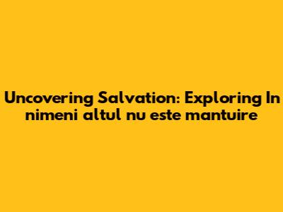 Uncovering Salvation: Exploring 'In Nimeni Altul Nu Este Mantuire'