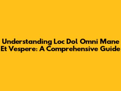 Understanding Loc Dol Omni Mane Et Vespere: A Comprehensive Guide
