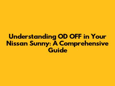 Understanding OD OFF In Your Nissan Sunny