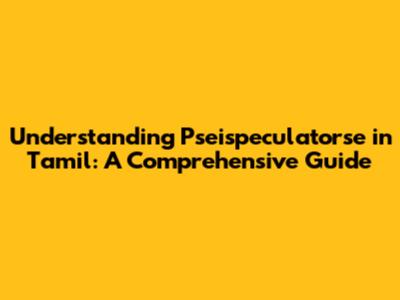 Understanding 'Pseispeculatorse' In Tamil: A Comprehensive Guide