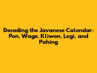 Hey guys! Ever heard of the Javanese calendar and its unique way of marking time? It's super fascinating, and today we're diving deep into understanding the meaning behind those mystical-sounding names: Pon, Wage, Kliwon, Legi, and Pahing. These aren't just random words; they represent specific days in the five-day Javanese market week, known as pasaran. Each day holds its own distinct character, influences, and significance in Javanese culture, impacting everything from daily life to important ceremonies. So, grab a cup of coffee, and let's unravel the secrets of the Javanese calendar together!