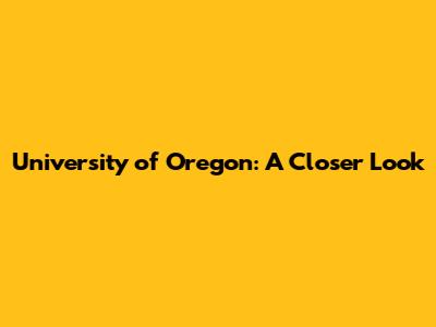 University Of Oregon: A Closer Look