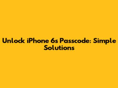 Unlock IPhone 6s Passcode: Simple Solutions