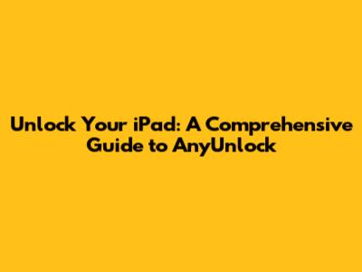 Unlock Your IPad: A Comprehensive Guide To AnyUnlock