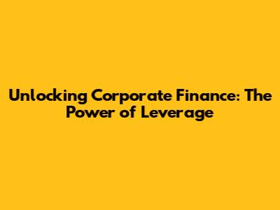 Unlocking Corporate Finance: The Power Of Leverage