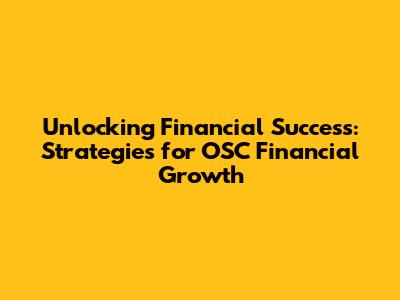 Unlocking Financial Success: Strategies For OSC Financial Growth