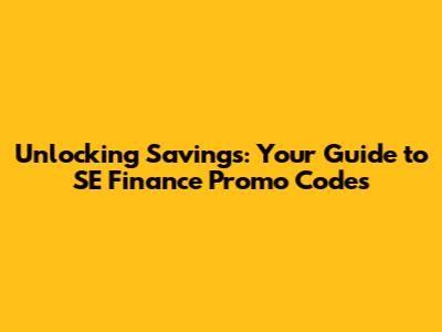 Unlocking Savings: Your Guide To SE Finance Promo Codes