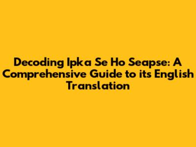 Decoding 'Ipka Se Ho Seapse': A Comprehensive Guide to its English Translation
