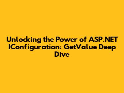 IConfiguration is not just a convenience; it's a fundamental architectural element that enables robust, scalable, and secure ASP.NET applications. Mastering it is non-negotiable for any serious .NET developer. And as we continue, you'll see how GetValue makes interacting with the configuration data super straightforward.