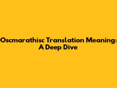 Unlocking The Secrets: Oscmarathisc Translation Explained