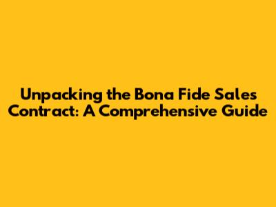 Unpacking The Bona Fide Sales Contract: A Comprehensive Guide