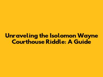 Hey everyone, are you ready to dive deep into a head-scratcher? We're talking about the Isolomon Wayne Courthouse Riddle, a brain teaser that's got folks buzzing. It's a classic example of a riddle that plays on words, history, and possibly a little bit of local knowledge. So, grab a comfy chair, maybe a cup of coffee, and let's unravel this mystery together! This article is all about helping you understand the riddle, its potential solutions, and some fun facts along the way. Whether you're a seasoned riddle solver or just starting out, we've got you covered. The main keyword here, of course, is the "Isolomon Wayne Courthouse Riddle". We'll be using this phrase a lot, so get used to it! The goal is to break down the riddle, look at the clues, and come up with some possible answers. It's all about thinking outside the box and having a little fun with it. This kind of riddle can pop up anywhere, from trivia nights to escape rooms, so knowing how to approach it is a valuable skill. Let’s get started and see if we can crack this one!