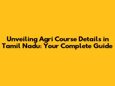 Unveiling Agri Course Details In Tamil Nadu: Your Complete Guide