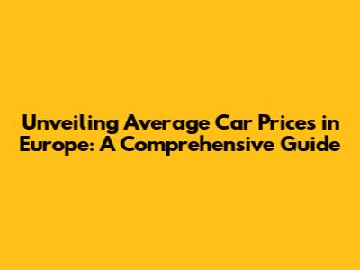 Unveiling Average Car Prices In Europe
