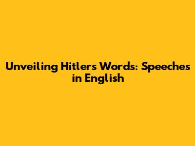 Unveiling Hitler's Words: Speeches In English