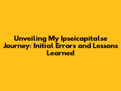 Unveiling My Ipseicapitalse Journey: Initial Errors And Lessons Learned