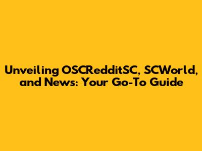 Unveiling OSCRedditSC, SCWorld, And News: Your Go-To Guide