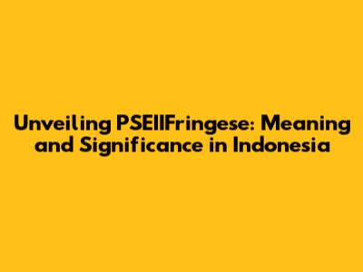 Unveiling PSEIIFringese: Meaning And Significance In Indonesia