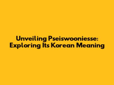 Unveiling Pseiswooniesse: Exploring Its Korean Meaning
