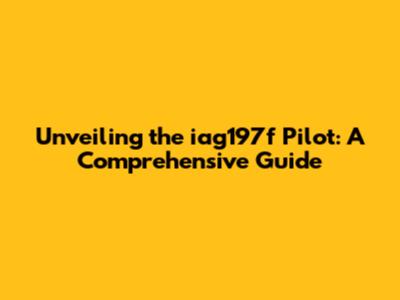 Unveiling The Iag197f Pilot: A Comprehensive Guide