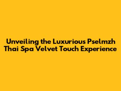 What Makes Pselmzh Thai SPA Velvet Touch So Special?
