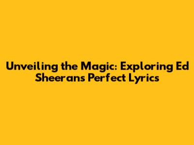Unveiling The Magic: Exploring Ed Sheeran's Perfect Lyrics