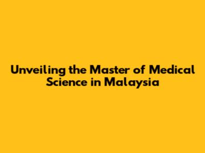 Unveiling The Master Of Medical Science In Malaysia