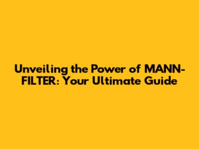 Unveiling The Power Of MANN-FILTER: Your Ultimate Guide
