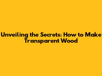 Unveiling The Secrets: How To Make Transparent Wood