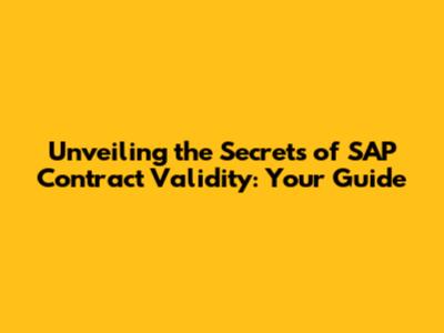 Unveiling The Secrets Of SAP Contract Validity: Your Guide