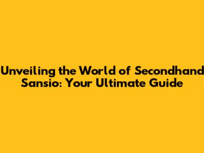Unveiling The World Of Secondhand Sansio: Your Ultimate Guide