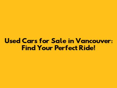 Used Cars For Sale In Vancouver: Find Your Perfect Ride!