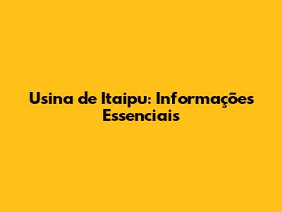 Usina De Itaipu: Informações Essenciais