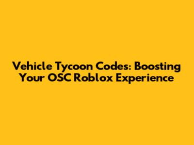 Vehicle Tycoon Codes: Boost Your OSC Roblox Experience