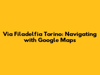 Via Filadelfia Torino: Navigating With Google Maps