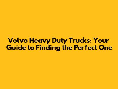 Volvo Heavy Duty Trucks: Your Guide To Finding The Perfect One