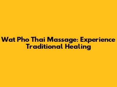 Wat Pho Thai Massage: Experience Traditional Healing