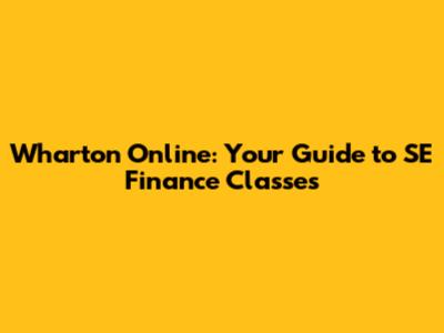 Wharton Online: Your Guide To SE Finance Classes